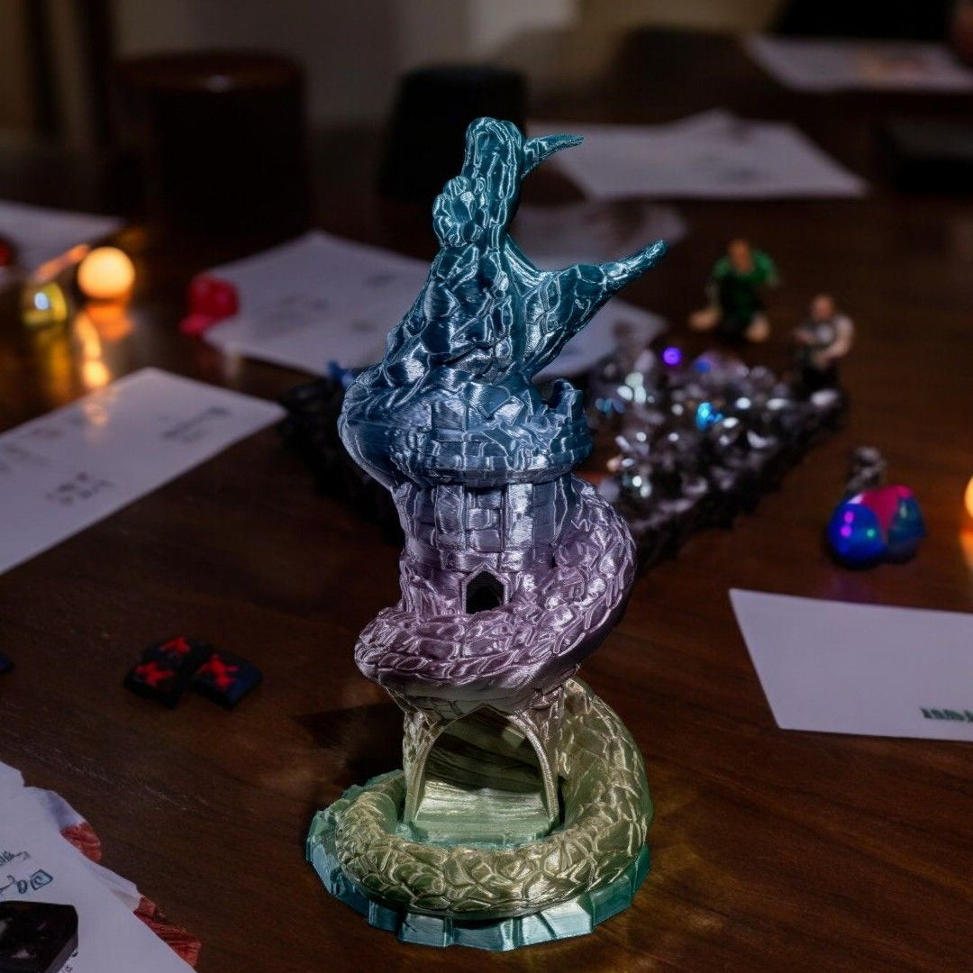 WICHTIGER HINWEIS: Der Würfelturm wird standardmäßig in einem einheitlichen Dunkelgrau geliefert. Das Produkt ist nicht bemalt, wie es auf den Beispielfotos zu sehen ist.