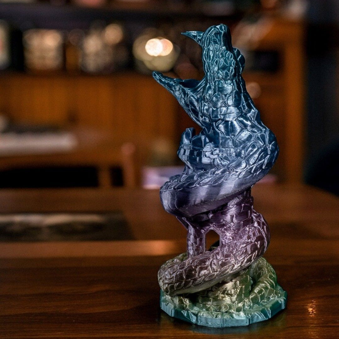 🐍 Legendäre Kreatur: Ein detailreicher Basilisk schlingt sich um einen verfallenen Turm und sorgt für ein episches Fantasy-Feeling bei Ihren Spieleabenden.